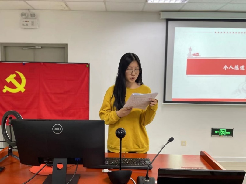 通过个人陈述,几位同志肯定了自己在过去一年时间中所取得的进步,同时也认识并反省了自身仍存在的不足,表示今后仍会不断提升自我,始终以党员标准要求自己。 依次结束三名预备党员的转正大会后,支部随后召开了两名积极分子的党员发展大会。发展对象范奕敏和赵梓叶在各自的发展大会上进行了个人陈述,讲述自己在发展过程中的思想变化与心路历程。