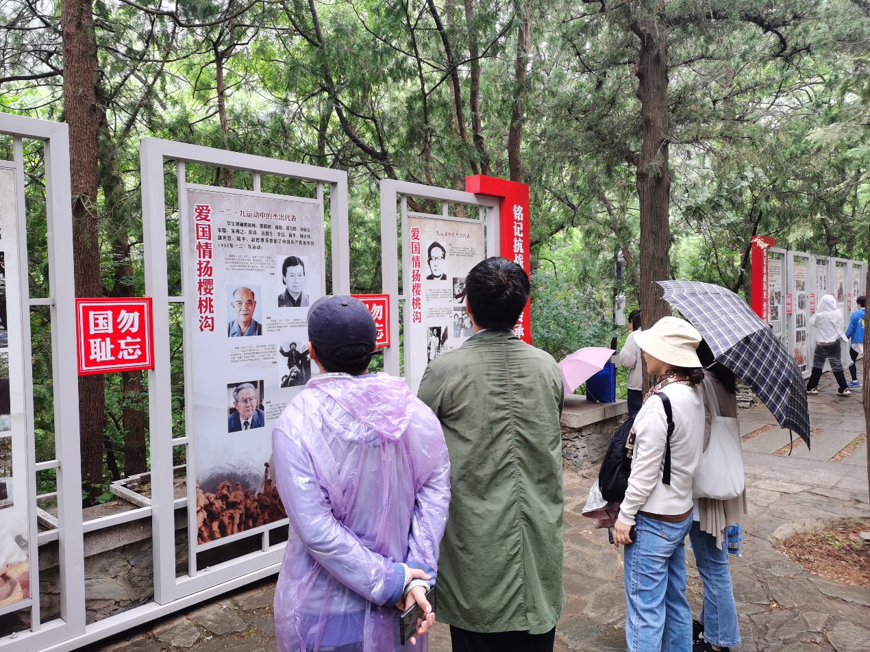 进入国家植物园后,沿着曲折的山路,大家一路步行前往“一二九”纪念亭,到达纪念亭后,老师们集体学习回顾了“一二九”运动的始末和意义,并分享交流了心得体会。 1935年12月9日,北平(北京)大中学生数千人在中国共产党的领导下举行了抗日救国示威游行,反对华北自治,反抗日本帝国主义,掀起全国抗日救国新高潮,史称“一二·九”运动。“一二·九”运动公开揭露了日本帝国主义侵略中国,吞并华北的阴谋,打击了国民党政府的妥协投降政策,大大地促进了中国人民的觉醒。正如毛泽东同志所指出的,“一二·九”运动是动员全民族抗战的运动,它准备了抗战的思想,准备了抗战的人心,准备了抗战的干部。