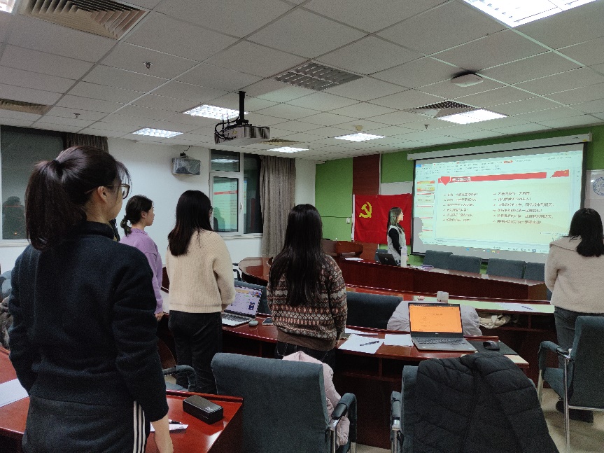 研究生第四党支部顺利开展“支书讲党课”活动。本次活动在后主楼1420线下举行,由孟玉洁同志主持,共有13名党员和预备党员参加。 首先,全体起立,奏唱《国际歌》。
