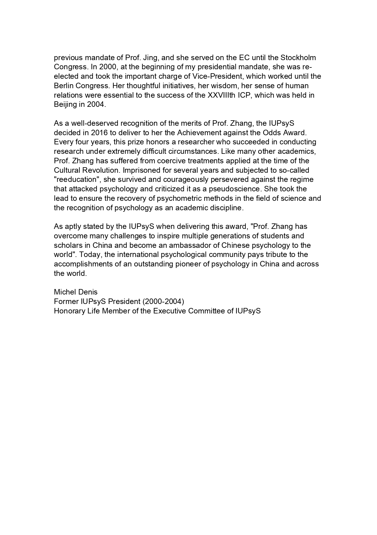 国际心理科学联合会(IUPsyS)唁电