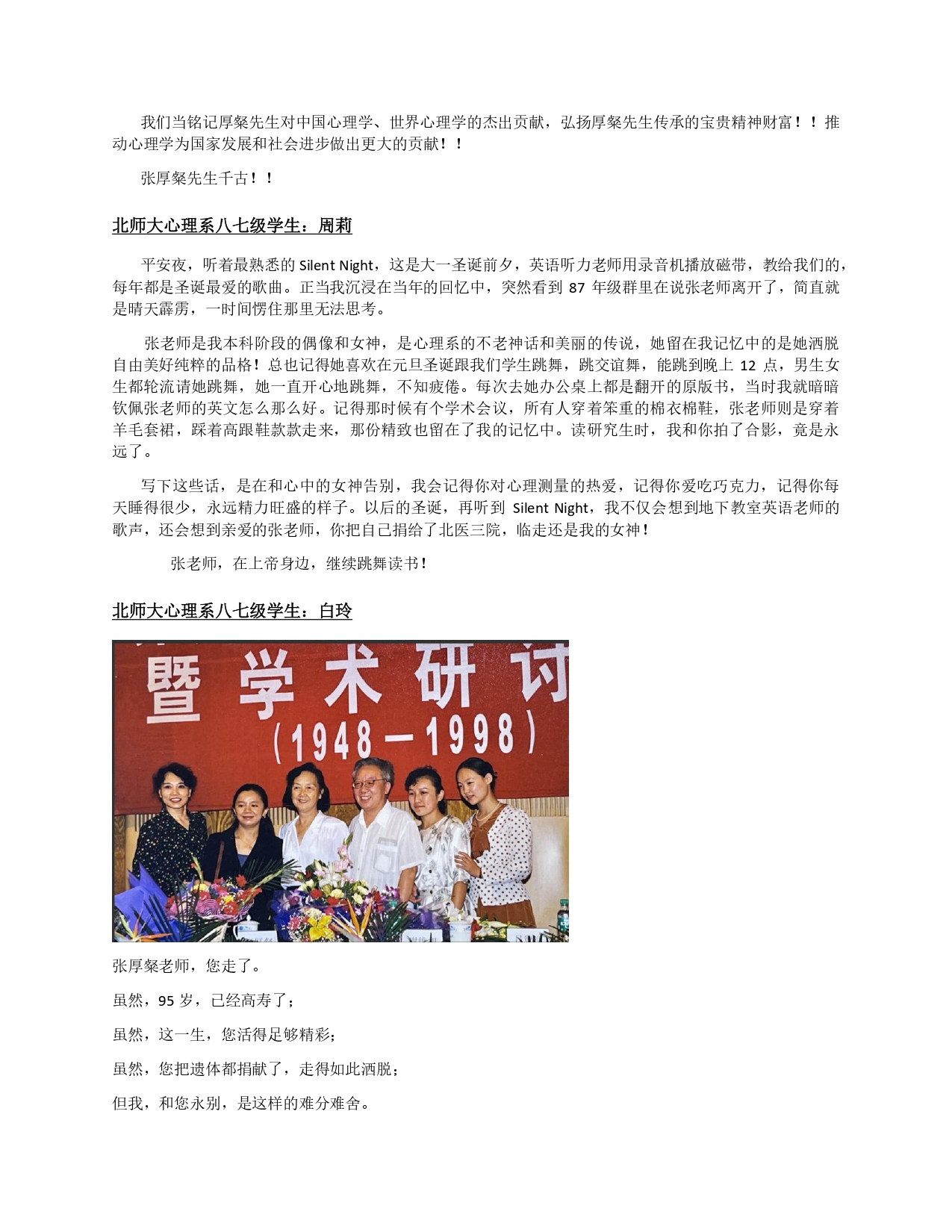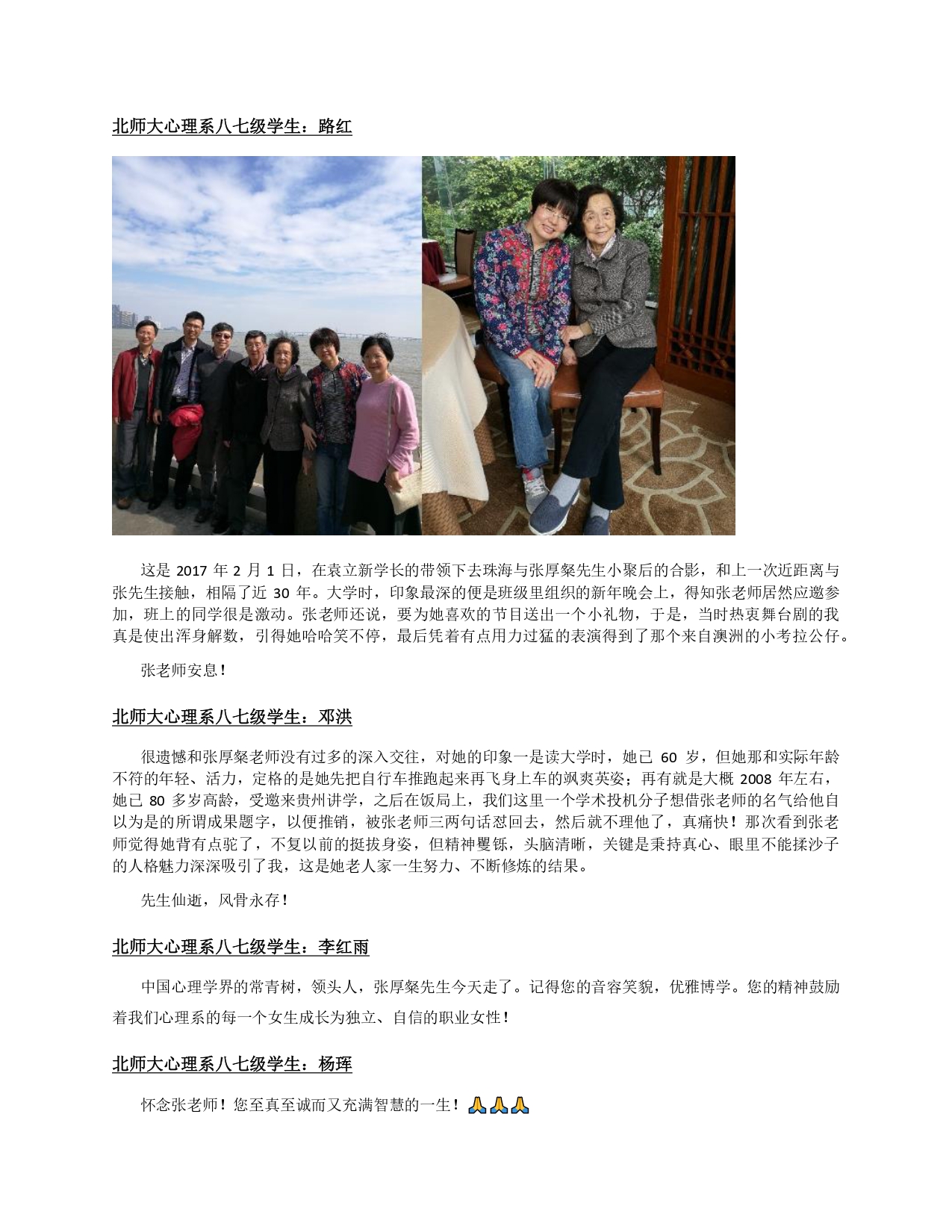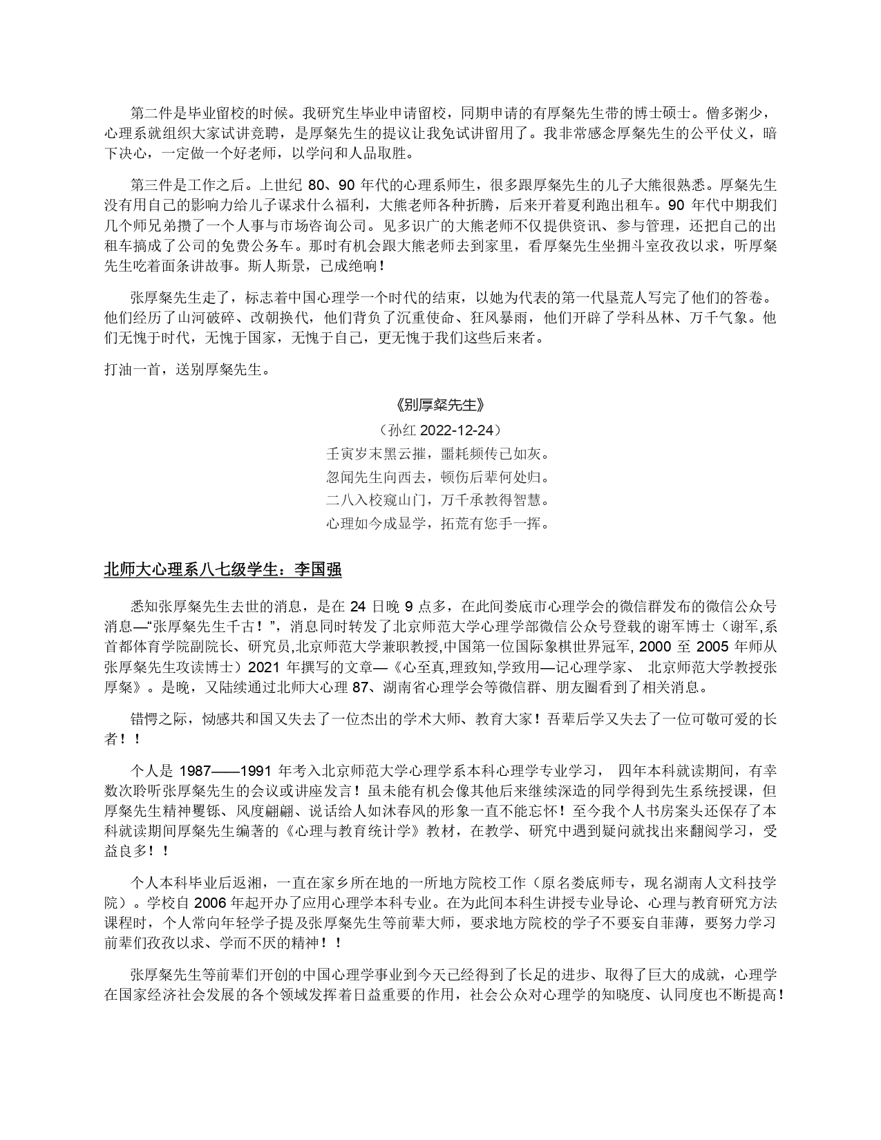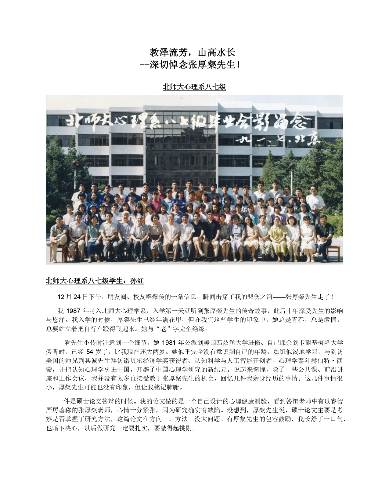纪念文章 | 教泽流芳,山高水长——深切悼念张厚粲先生