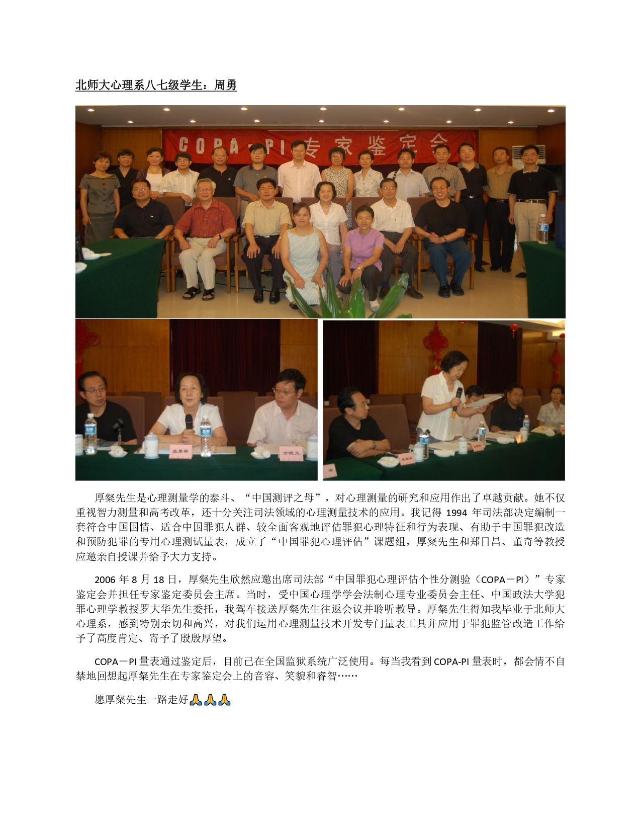 华南师范大学心理学院张卫教授、王穗苹教授唁电