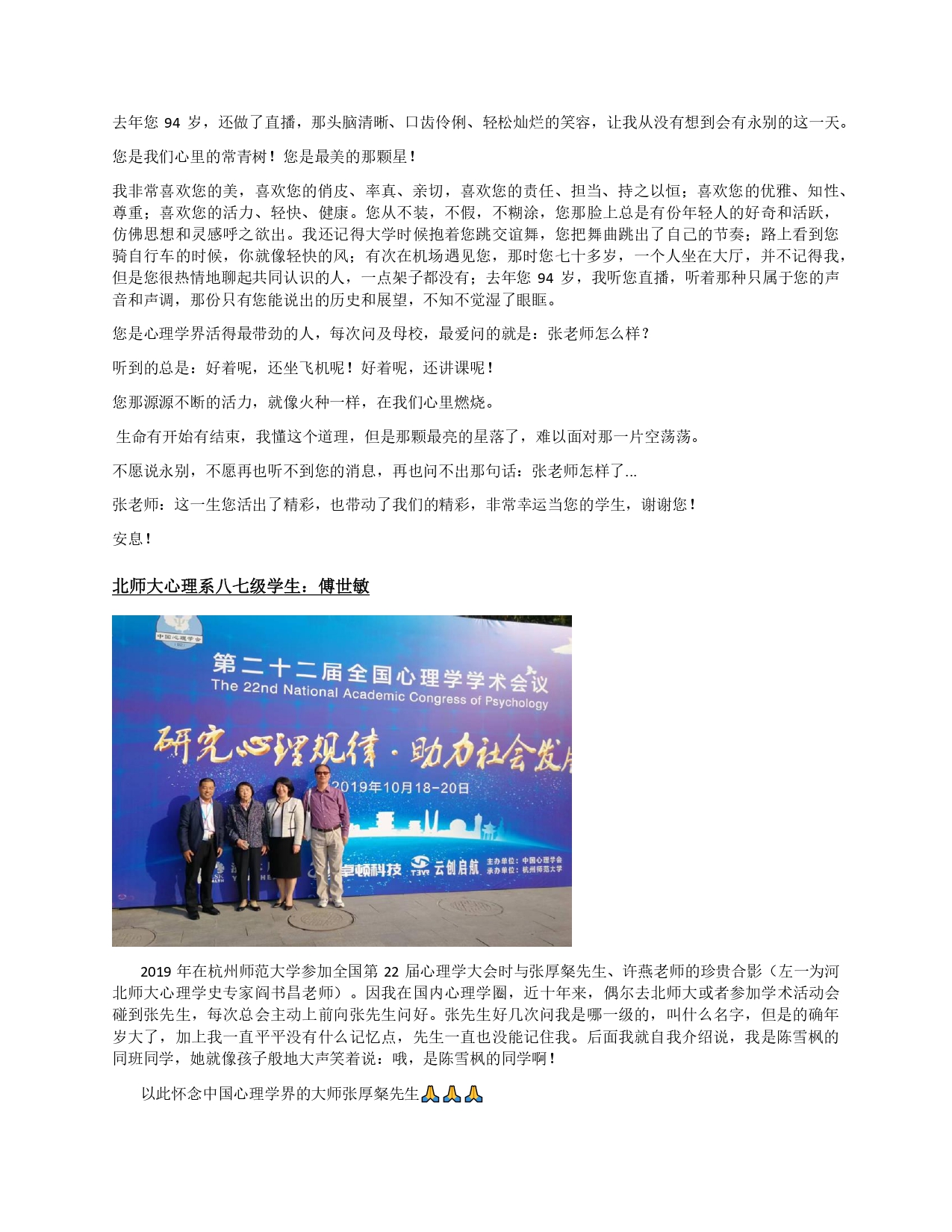 | 悼念张先生