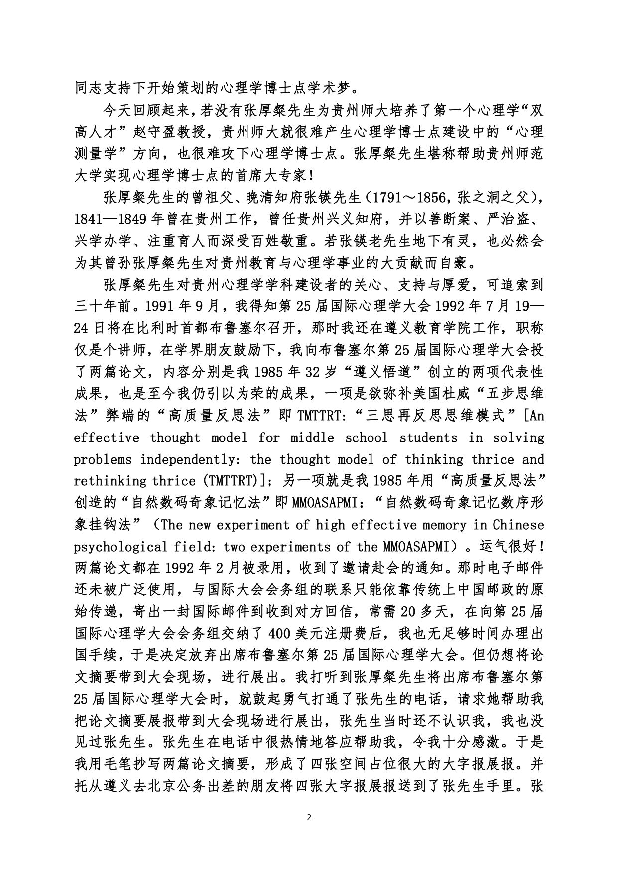纪念文章 | 深切缅怀张厚粲先生对贵州省心理学学科建设的大贡献