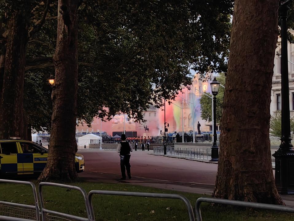 在Social Programme中的经历令人十分难忘,在Ghost Walking Tour中随着披着红色围巾的导游走过了方尖碑、维多利亚花园、白厅等一个又一个伦敦的地标,听到了好多英国鬼故事传说,虽然对我的听力是一种巨大的考验,但看似陌生的街道,一个角落一个转角甚至是泰晤士河的水里竟然也会有这么多故事,令我惊叹,最后我们走到圣詹姆斯公园时,正好遇上卫兵庆典,传说中的红制服黑高帽卫兵终于让我见到了!但我们只能远远地观望从广场上升起庆祝的彩色烟雾,感受风中传来悠扬的交响乐,与朋友们聊着天远远地拍照,等着卫兵们游行时经过我们面前,然后仔细地观察他们的打扮与手里拿着的形状各异的乐器,怀疑他们在高高的帽子下面藏着的眼睛能否看到前面的路,然后等他们全都走过,我们也踏着夜色向公交站走去。