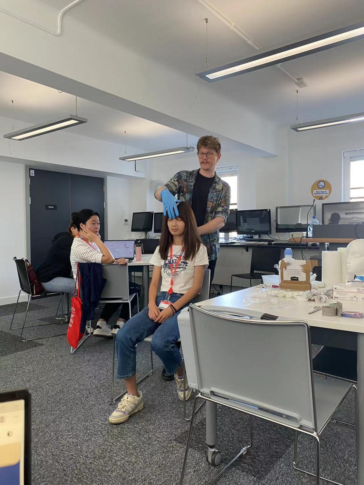 到了第一周的周四,我们的学习进入了更加深刻和具体的领域——经颅磁刺激(transcranial magnetic stimulation,TMS)和经颅直流电刺激(transcranial direct current stimulation,tDCS)。这天,我们不仅是在纸上了解理论,更是现场目睹了老师如何操作经颅直流电刺激的过程。在早已学过的理论知识的基础上,亲眼看到操作的全过程,让我深深地领略到这个过程的复杂性。曾经抽象的概念,在操作中逐渐具象,一丝一毫地呈现出来。我清楚记得,在理论学习时,我未曾想到这个过程竟是如此的精细和繁琐。仅仅是定位一个区域,就需要经过无数步骤的严格流程。这次实地操作,不仅带给我对技术的实际认识,更让我明白了在理论和实践之间存在的鸿沟。从书本知识到现实操作,其中的变数和挑战也在逐步凸显。然而,正是这种挑战和复杂性,激发了我进一步深入学习和探索的欲望。