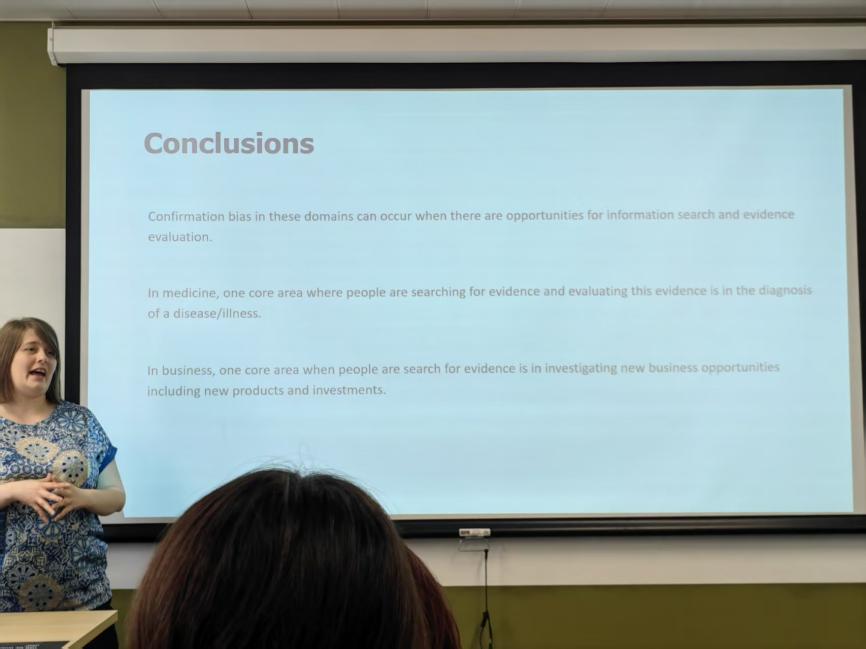 这三门课程共同支撑起我们对于心理学应用领域的全新认知框架。它们让我明白,心理学不仅是解释现象的工具,更是干预行为、促进健康、服务社会的强大力量。 除了三位教授的授课之外,小组汇报是另一个让我受益匪浅的部分。课程最后的presentation要求我们在8分钟内完成对于“心理学如何在交通、消费与能源领域帮助我们做出更多生态可持续的选择?”这一问题的研究与回答,我们小组的课题是《Green or Glamorous? A study on Fast Fashion consumption decision-making based on Prospect Theory》。从确定选题、文献调研、构建模型到设计干预方案,我们经历了无数次激烈的头脑风暴。汇报当天,看着前面四个小组精彩纷呈的展示,压力与动力并存。轮到我们时,我们尽可能清晰、自信地阐述了我们的研究设计与发现,获得了老师和同学们的鼓励。