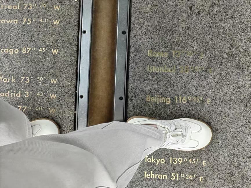 格林尼治天文台的本初子午线,让我们双脚横跨东西半球,体验了一把“时间与空间”的掌控感。当我双脚分别踏在本初子午线的红线上时,左手边是东半球的晨光,右手边是西半球的微风,手机定位显示“经度0°”——地理课本里“经度起点”的概念突然有了重量。