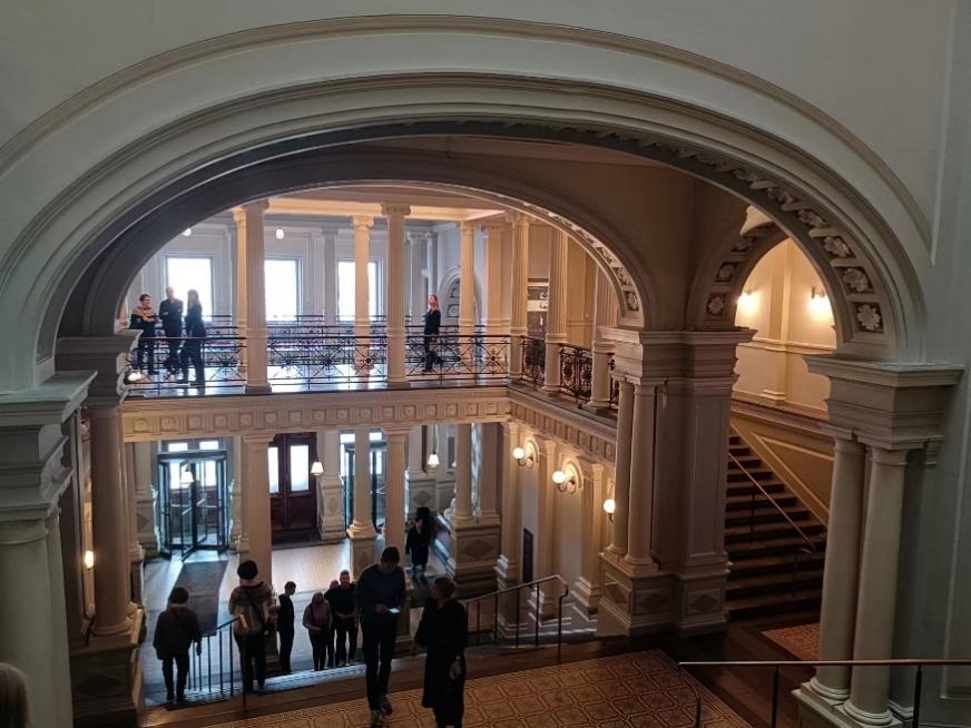 三、关于生活:体验文化冲击 因为酒店的安排或者芬兰的传统,我们每天的早饭都很丰盛,肉类、水果、牛角包和传统面点,还有各种果汁和酸奶——我愿称之为国王的早餐。但初来乍到,芬兰的食物还是给了我一点文化震撼,不过后来也渐渐习惯。在当地老师带领下,我们有机会来到了图尔库一家专营当地特色食物的独立餐厅,体验传统的三文鱼汤和豆子。现在想来,食物也反映了芬兰人对待生活的态度和智慧。芬兰白天短暂,人们格外珍惜白天的时间,丰富的早饭能保证充沛的精力,简单的午饭过后能早早开始下午的工作。这种生活态度也给我带来了启发,让我重新审视自己对待食物和生活的方式,更加珍惜和利用每一天的时间和精力,追求更加健康、平衡和充实的生活。 四、其他 这次是我第一次走出国门参加访学活动,其实整个过程都让我觉得很新鲜,也受到了不小的文化冲击。由于跨越时区,行程的第一天有30个小时,倒时差后我出现了明显的睡眠障碍症状;第一天到达旅馆时,不习惯芬兰的饮水方式;由于刚下过大雪路很滑,多次处于摔倒的边缘等等……但种种不适应都被逐渐克服了。这十天的故事中有很多惊喜、惊讶、惊奇的小插曲,这次访学也确实是非常值得铭记、让我受益良多的一次经历。