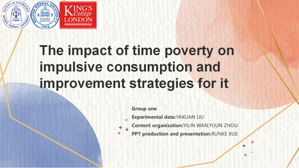第二组(刘雅暄/万祎林/周怡君/薛润柯)报告《The Impact Of Time Poverty On Impulsive Consumption And Improvement Strategies For It》