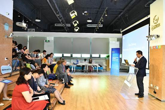 学术报告发言人,就家庭治疗中儿童对立违抗性障碍(oppositional defiant disorder,ODD)的风险及保护因子做了详尽的报告。Kevin Francis Miller教授作为密大学术报告发言人向大家介绍了课堂中的分心研究。从科研想法的提出到实验的进行,让同学们感受了密大教育心理学研究的魅力。其中一张早年在中国实验室进行的眼动研究照片更让同学们倍感亲切。Kevin的研究展示了教育心理学研究的实践意义,富有新意的研究主题和巧妙的实验方法,使得在场同学纷纷称赞。 蔺秀云教授和Kevin Francis Miller教授分别作为两校学术报告人发言 之后,由中美学生混合组成的五个报告小组分别报告了所在小组进行的研究,这些研究都是本学年密大学生来访北师大期间,在老师的指导下两校学生共同完成的。现场还邀请了华东师范大学和华南师范大学的同学进行了学术报告,各个小组精彩的报告内容赢得了现场阵阵掌声。 中外学生报告中 报告结束后,金牌影院 副部长王君为参会的学生颁发了证书,鼓励学生们在这期间的努力,并对未来的合作表示了极大的期待。两校师生们互换礼物,在亲切友好的氛围中相互交流、合影。北师大与密歇根大学的交流已经走过了近40个春秋,相信双方的友谊将在未来的合作和交流中更加长远、深厚。 金牌影院 副部长王君致辞