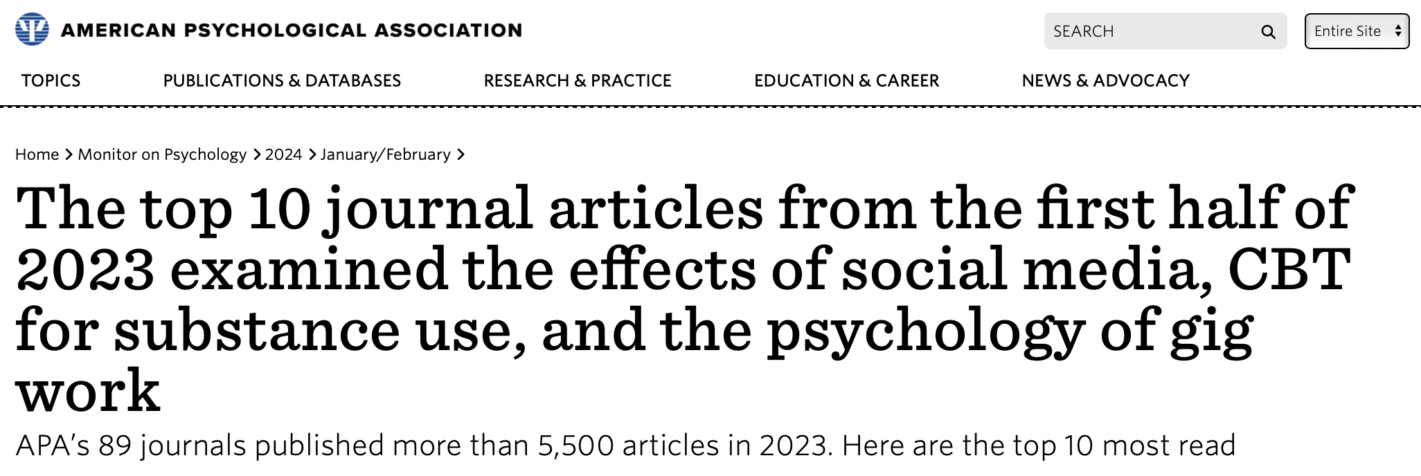 近日,美国心理学会(American Psychological Association,APA)发布了2023年度下载量最高的10篇文章。其中,第9篇来自金牌影院