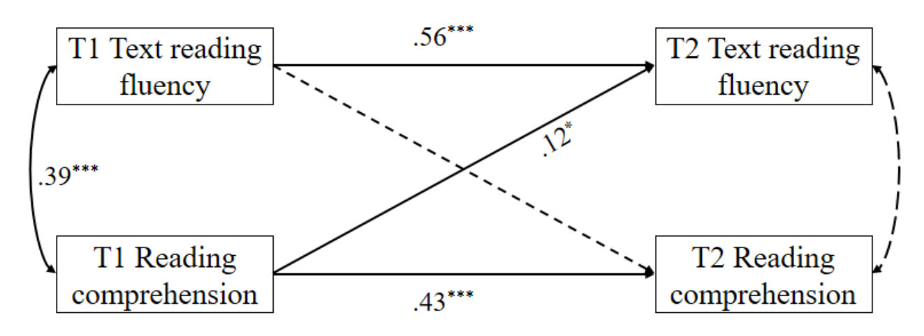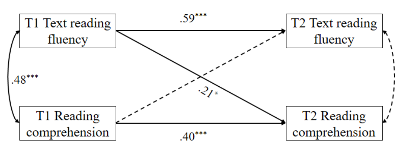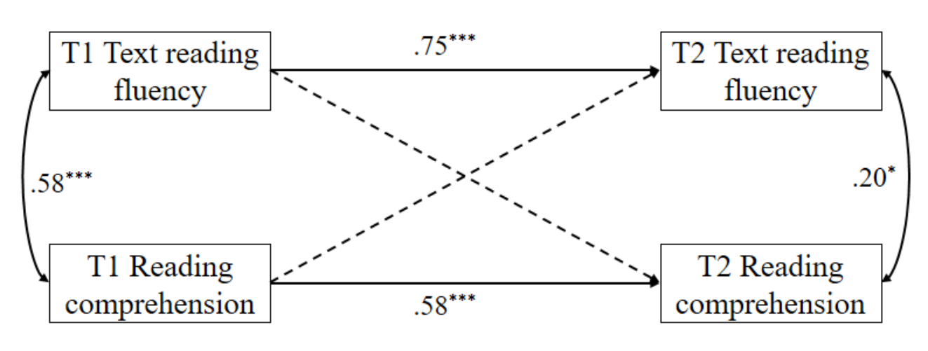 图3 四年级儿童文本阅读流畅性与阅读理解的交叉滞后关系