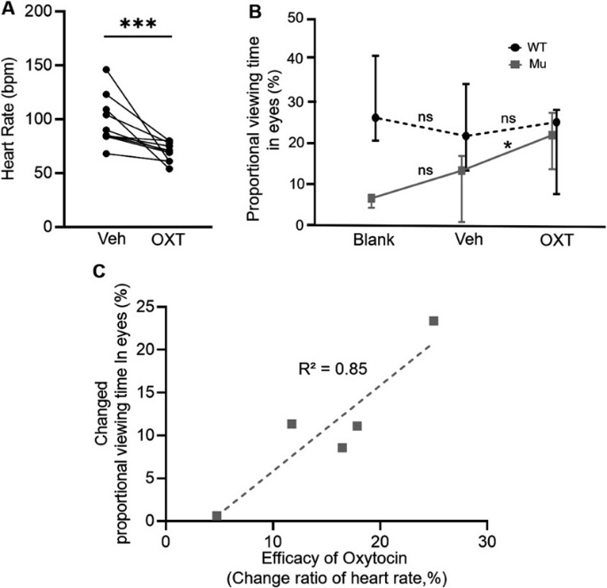 该研究还发现,在外源催产素处理后,Shank3突变犬的眼部注视时间显著增加,这一结果与部分人类研究相似。已有研究表明,催产素可增强孤独症个体的社交信任和情感理解能力,并促进他们在自然社交互动中维持更长时间的眼神接触。本研究不仅加深了对Shank3突变如何影响社交注意力的理解,也为催产素在孤独症干预中的潜在应用提供了新的实验依据,进一步强化了犬类模型在孤独症研究中的独特价值。