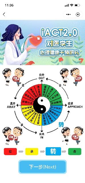 医学生心理困扰问题在全球范围内日益加剧,迫切需要有效的心理健康干预手段。传统心理治疗往往因时间消耗大、经济成本高等问题,成为医学生寻求帮助的主要阻碍。为此,研究团队设计了基于网络的自助式接纳与承诺疗法(iACT 2.0),通过文化适配与创新设计,为医学生提供了一种高效、便捷的心理健康改善工具。 iACT 2.0疗法融合了中国传统文化和现代心理学理论,采用八卦图作为视觉辅助工具,并通过“启-承-转-合”的四步框架,生动展现心理灵活性与僵化性转变的过程。与传统疗法不同,本干预从第一节课起便涵盖六大心理灵活性维度,随后通过多样化案例强化学习效果。同时,课程设计排除了治疗师的直接支持,采用自助式方法,进一步降低了参与门槛。
