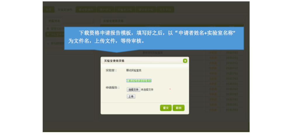 一、 IE 登录“心理学院公共资源管理平台”,激活账号: A. 网址://219.143.237.178:8080/ClientWeb/xcus/bsd-xl/Default.aspx B. 登录的用户名(1)为“学号/工作证号”,密码(2)为“一卡通查询密码”。(一台 机器只能同时登陆一个账号) C. 使用前请认真阅读《预约规则》、《实验室文明使用守则》(3) D. 可以通过“实验室介绍”了解各实验室的配置条件,找到满足需要的实验室。 E. 新用户首次登陆时,需要激活。请在激活界面填写自己的手机号和邮箱(5)。 F. 进入主页,开始准备实验室预约。“实验室预约”和“用户中心”最为常用。 二、 进入“实验室预约”界面,申请加入实验项目: 说明:按照实验室使用规定,所有学生预申请使用实验室,都需要经过指导教师同意, 并在预约系统中申请加入指导教师所设立的实验项目(即包括科研项目、也包括教学项目)。 指导教师通过自己的账号将你加入项目或者审核通过了你的申请之后,你才有资格以所申请实验项目的名义提交实验室预约申请。 三、 进入“实验室预约”界面,申请实验室使用资格: 说明:按照实验室使用规定,所有学生预申请使用实验室,都需证明自己经过专业训练,具有使用所申请实验室仪器设备的技能。因此,在申请使用实验室之前,需通过系统向实验室管理教师提出申请,证明自己的实验操作能力。申请一旦通过,终身有效,无需再次申请。 四、 进入“实验室预约”界面,申请开展本次实验资格: 说明:在取得项目资格和实验室使用资格之后,点击项目,进入实验申请页面。 此时,在使用资格一览中显示为“可以使用”的实验室即可申请实验项目。 五、 万事俱备、只欠东风,开始预约实验室啦~ 说明:当你爬山涉水,三项审核都通过了,那么你就可以轻松的预约实验室啦~ 进入界面之后,以日视图查看: 进入界面之后,以月视图查看: 注意:如果在日视图上时间段对应的框中显示为蓝色,则代表此时段此实验室已被预约。 这一步完成后,就相当于你申请的那间实验室在你申请的时段中归你所有了。 注意,并不是每次都需要重复所以以上项目,只要满足了以上三次审核,就可以申请 实验室,如果缺少一项或者两项,补上缺失的项即可。 六、 临时有事,实验取消?查看和退订实验室啦~ 说明:基于实验室管理规定,约了实验室迟到或者不来,是需要扣除相应积分的,因此, 如果临时有事迟到或取消实验,一定要在预约系统更改预约信息,避免不必要的损失。 进入用户中心: 综述:预约实验室需要满足三项许可, 之后即可自由预约。 (1) 项目资格,申请加入教师项目 (2) 使用资格,是否具有使用所申请实验室的技能 (3) 实验资格,申请的实验是否适合在该实验室进行 完成以上三步审核后,即可在规定时段内选择实验室啦~如果 不满足以上条件,缺哪个补哪个就可以啦~ |