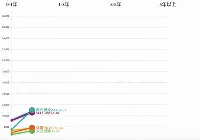 上期推文是针对心理学人就业需求形势进行整体描述和分析,为目前没有明确就业方向的朋友提供参考。当大家确定了就业方向后,关注的要点就会发生改变,更加聚焦与特定岗位的匹配程度。因此,我们根据岗位数量及同学们的热门就业意向选取了六个岗位进行了深入分析。(分别为:产品、用研、设计、运营、人力、教培岗)注:本文所有分析结果仅来源于包含‘心理学’的招聘信息,为心理学人就业提供参考,请勿将结果推论至岗位整体情况。 薪资对比 我们首先对六个热门岗位的薪资分布进行了对比分析。薪资水平最高的是用户研究岗位,同时该岗位也是跨度最大、薪资上限最高的岗位,说明随着工作能力的提升,薪资会得到显著的增加。 产品、用研和设计岗位的下四分位都在10000元左右,说明这三个岗位75%的薪资待遇都在10,000元以上。 人力资源和运营岗的薪资水平相对较低,虽然平均薪资在12,000元以上,但中位数低于10,000元,说明有一半以上的岗位月薪不足一万元。 教育培训岗位的薪资水平在六个热门岗位中是最低的,上四分位数没有到达10,000元,说明该岗位75%的薪资水平都在10,000元以下。 通常来说,薪资会随着工作经验的积累而增加,因此,我们加入了工作经验维度,对热门岗位平均薪资随年限的变化趋势做了以下分析: 可以看出,产品和设计的起薪相对较高,且随着工作经验的增长,平均薪资也一直名列前茅。在工作经验满1年后,用户研究的薪资增幅最大,平均薪资跃居第一(1-3年经验情况下)。工作经验满5年后,运营岗的薪资增幅最大,平均薪资位于第三位。 我们在原始数据中发现了教育培训和人力资源岗位平均薪资比较低的原因:教培岗位里面有不小的比例是招聘中小学老师,且招聘地区主要集中在二三线城市,没有北上广地区教师的高薪加持,所以平均薪资较低。人力资源岗位在互联网行业和实体行业都不可或缺,且在各线城市分布较为均匀,薪资水平和集中在互联网行业的岗位相比也略低,不过人力资源岗位需求量最大,是绝大多数公司不可或缺的一分子,也算有利有弊吧。 不同地区薪资对比