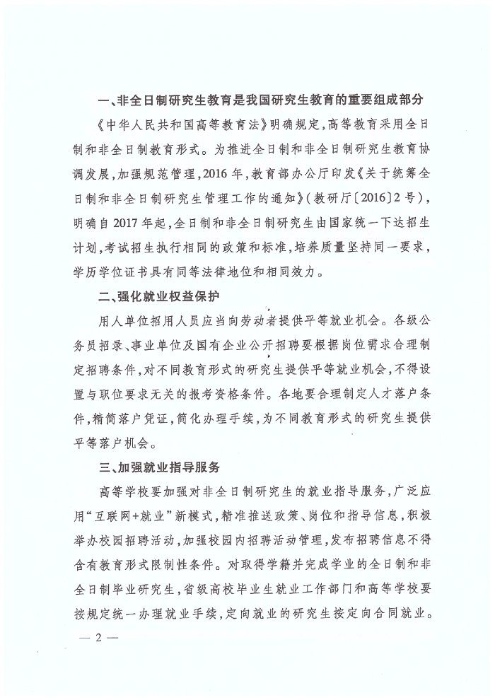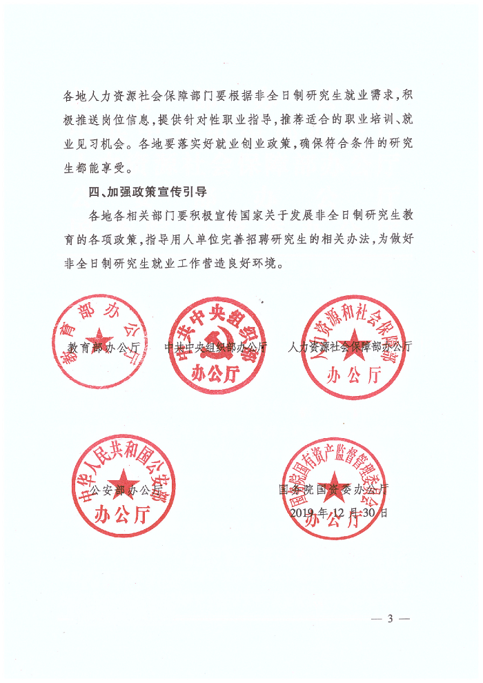文件原件: 教研厅函【2019】1号-教育部办公厅等五部门关于进一步做好非全日制研究生就业工作的通知