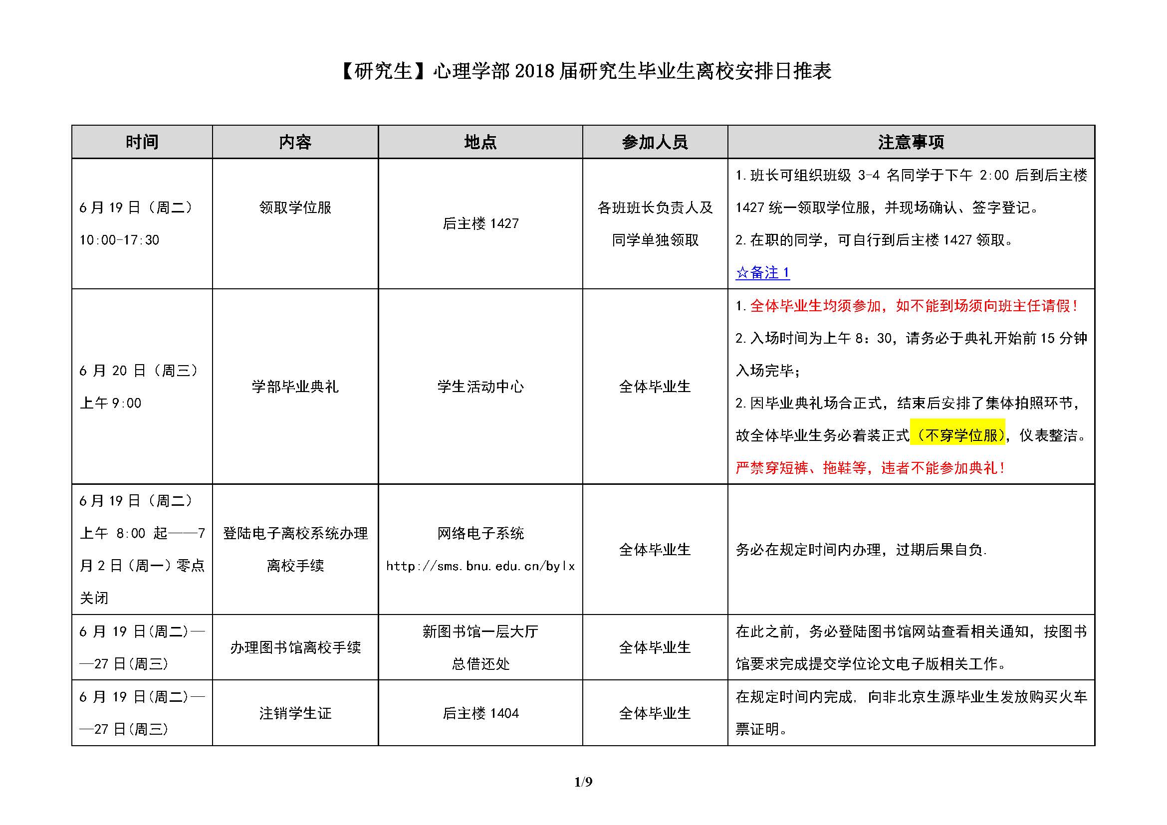 【研究生】金牌影院 2018届研究生毕业生离校安排日推表