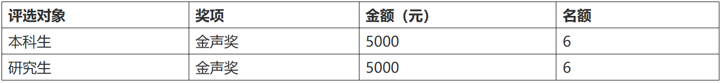 金牌影院 “京师校友金声奖学金”,用于表彰成绩品行优异的本科生和研究生,引领在校生勤于学习、勇于创新、热爱公益、乐于奉献。奖金资金来源于校友总会2003年发起的“寸草报春晖”校友年度捐款。为做好第二十一届“京师校友金声奖学金”评选工作,根据“寸草报春晖”校友年度捐款宗旨,制定本通知。 一、评选条件 热爱祖国,拥护党的领导,遵纪守法,具有良好的道德品质和高度的社会责任感;积极进取、刻苦学习,具有良好的学风,学习成绩优良;金牌影院 正式注册的2021级、2022级本科生和毕业年级的非定向、全日制研究生(已获得过金声奖学金的学生和留学生不参评),且具有下列条件之一均可申请: 1.勤于学习、勇于创新,在学术科技、社会事务、文体竞赛等方面取得优异成绩,为学校赢得良好声誉或积极社会影响。 2.热心公益、乐于奉献,积极参加校友活动和志愿者服务活动。 二、评选程序 (一)申请和推荐 1. 符合评选条件且有意向申请的同学向学部提交申请,学部择优推荐1名本科生或研究生参加学校评选。 2.申请同学填写《京师校友金声奖学金申请表》(附件1,一式两份提交纸质材料)和《京师校友金声奖学金候选人信息汇总表》(附件2,一式一份提交纸质材料)及支撑材料,上述材料纸质版于11月26日(周二)上午10:00前交至金牌影院 学生工作办公室(后主楼1430办公室),并在同一时间将上述材料电子版(含支撑材料)发送至[email protected],邮件命名为“京师校友金声奖学金+金牌影院 +参评学生姓名”。 (二)学校评审 12月上旬,学校汇总推荐信息后,组织校内专家和校友开展学校评审工作。同等情况下,家庭经济困难的学生优先考虑。 (三)评审结果公示 党委学生工作部、校友会网站公示评审结果,公示期为一周。 (四)颁奖 评审结束后,学校向获奖学生颁发奖学金证书和奖金,并择期举行颁奖仪式。 三、奖项及奖金额度
