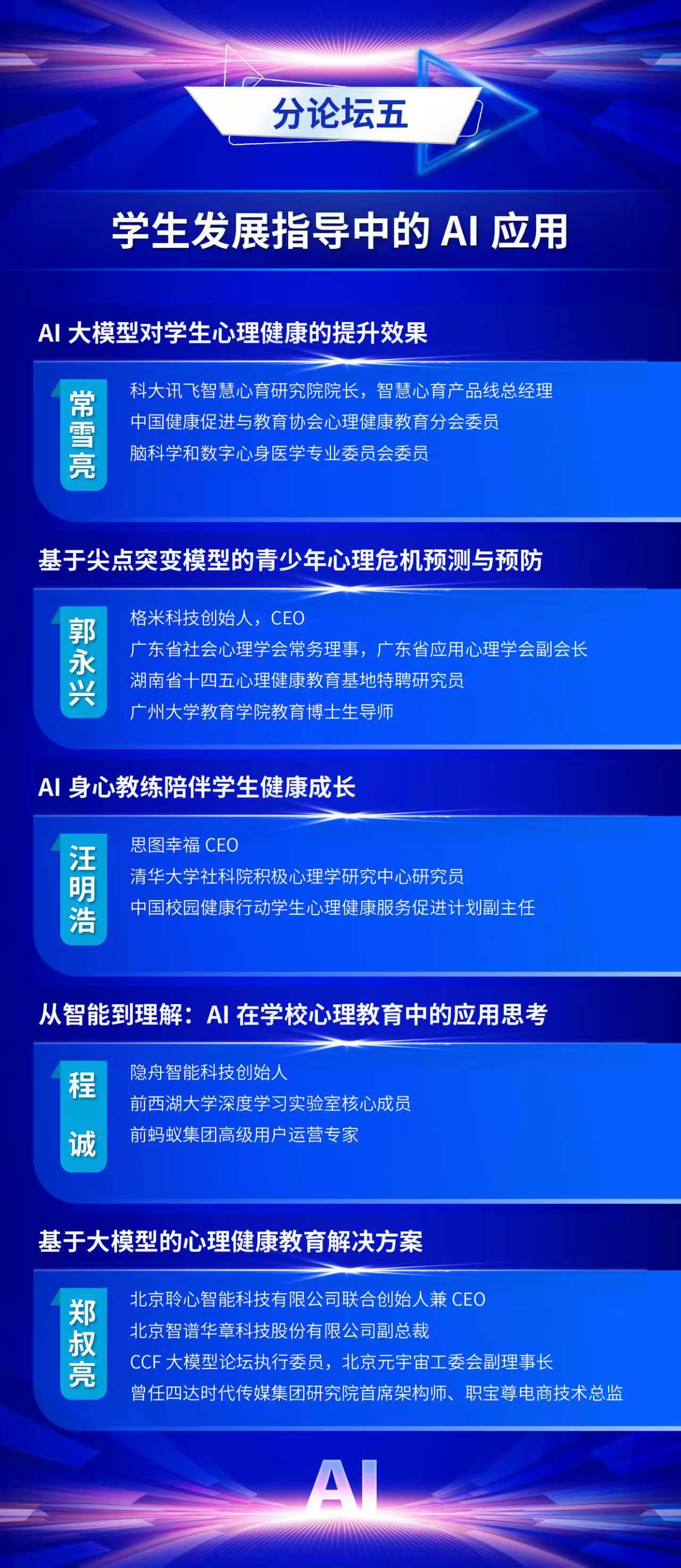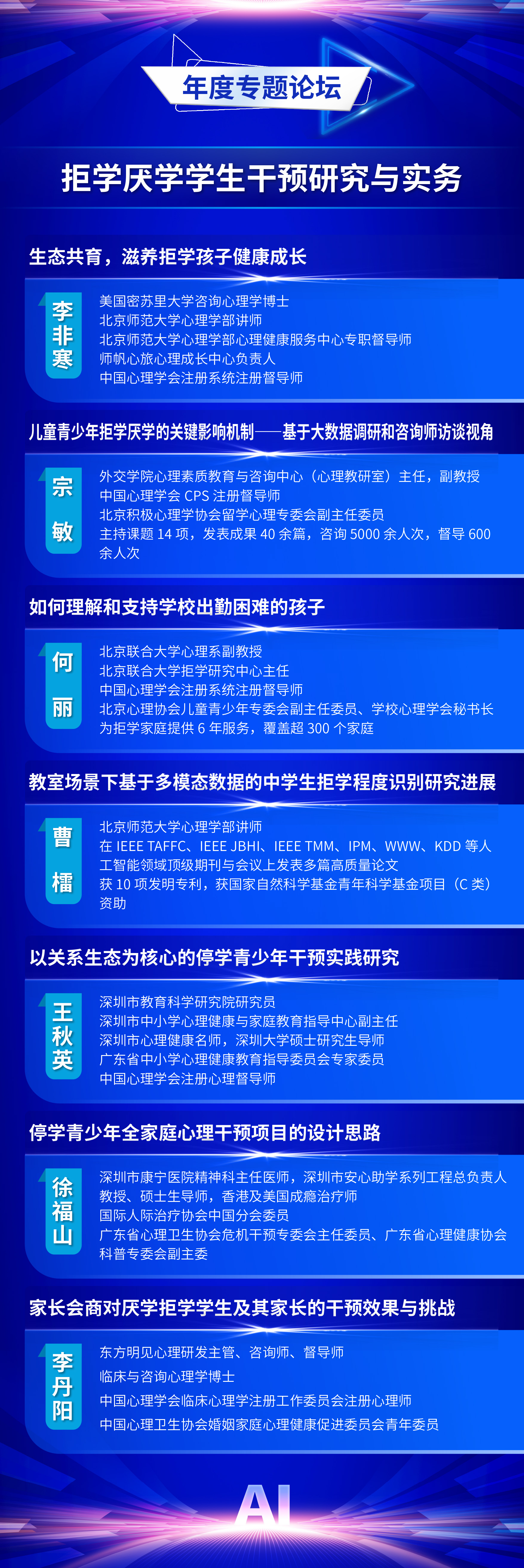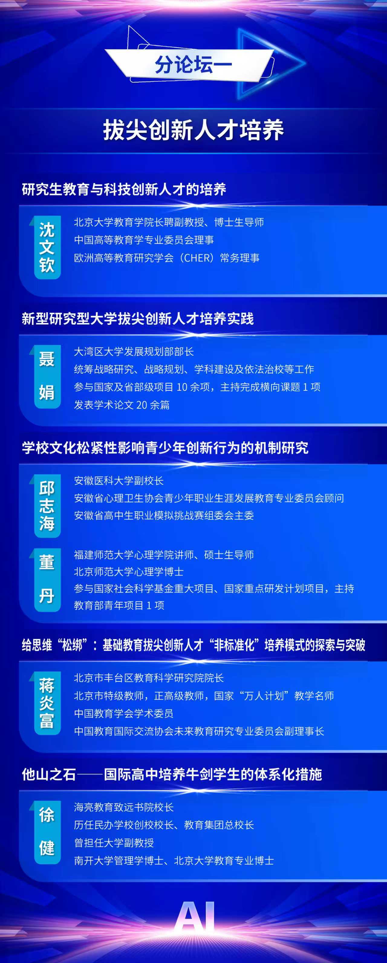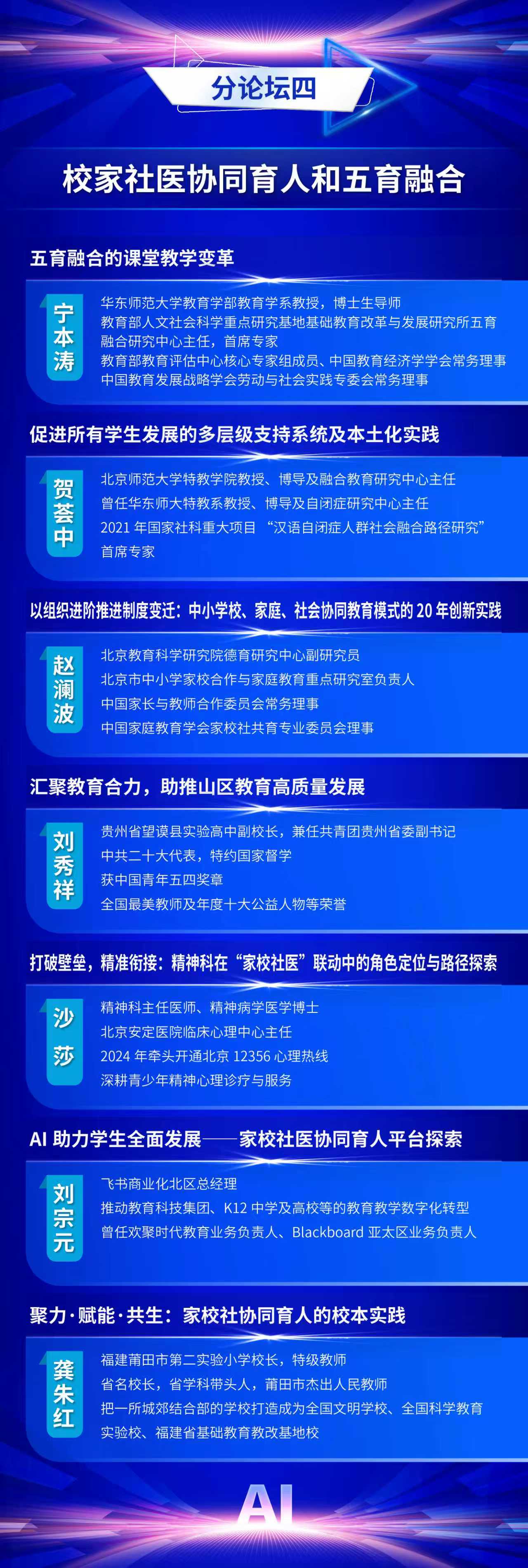 为全面贯彻党的二十届三中全会精神和全国教育大会精神,认真落实《教育强国建设规划纲要(2024-2035年)》,推动数智时代学生发展指导工作的创新与实践,中国教育学会学生发展指导分会定于2025年11月7日—11月8日在福建福耀科技大学(福州市)举办中国教育学会学生发展指导分会2025学术年会。现将有关事项通知如下: 一、会议主题 人工智能赋能学生发展指导 二、组织单位 主办单位:中国教育学会学生发展指导分会 金牌影院 金牌影院 承办单位:金牌影院 出版集团 支持单位:福州市教育局 福建福耀科技大学 福建师范大学心理学院 三、时间地点 会议时间:2025年11月7日—11月8日 会议地点:福耀科技大学国际学术交流中心(福州佩伯酒店) 四、会议日程 11月6日全天 报到 11月7日上午 开幕式,主旨报告 11月7日下午 校长论坛:迈向数智时代的教育新生态 分论坛一:拔尖创新人才培养 分论坛二:中小学心理健康教育 分论坛三:人工智能背景下的劳动与实践育人 分论坛四:校家社医协同育人 平行分会场论文报告 11月8日上午 分论坛五:学生发展指导中的AI应用 分论坛六:AI背景下“以学为中心”教学方式改革 分论坛七:中小学生涯发展教育 年度专题论坛:拒学厌学学生干预研究与实务 平行分会场论文报告 11月8日下午 主旨报告,闭幕式 五、出席嘉宾