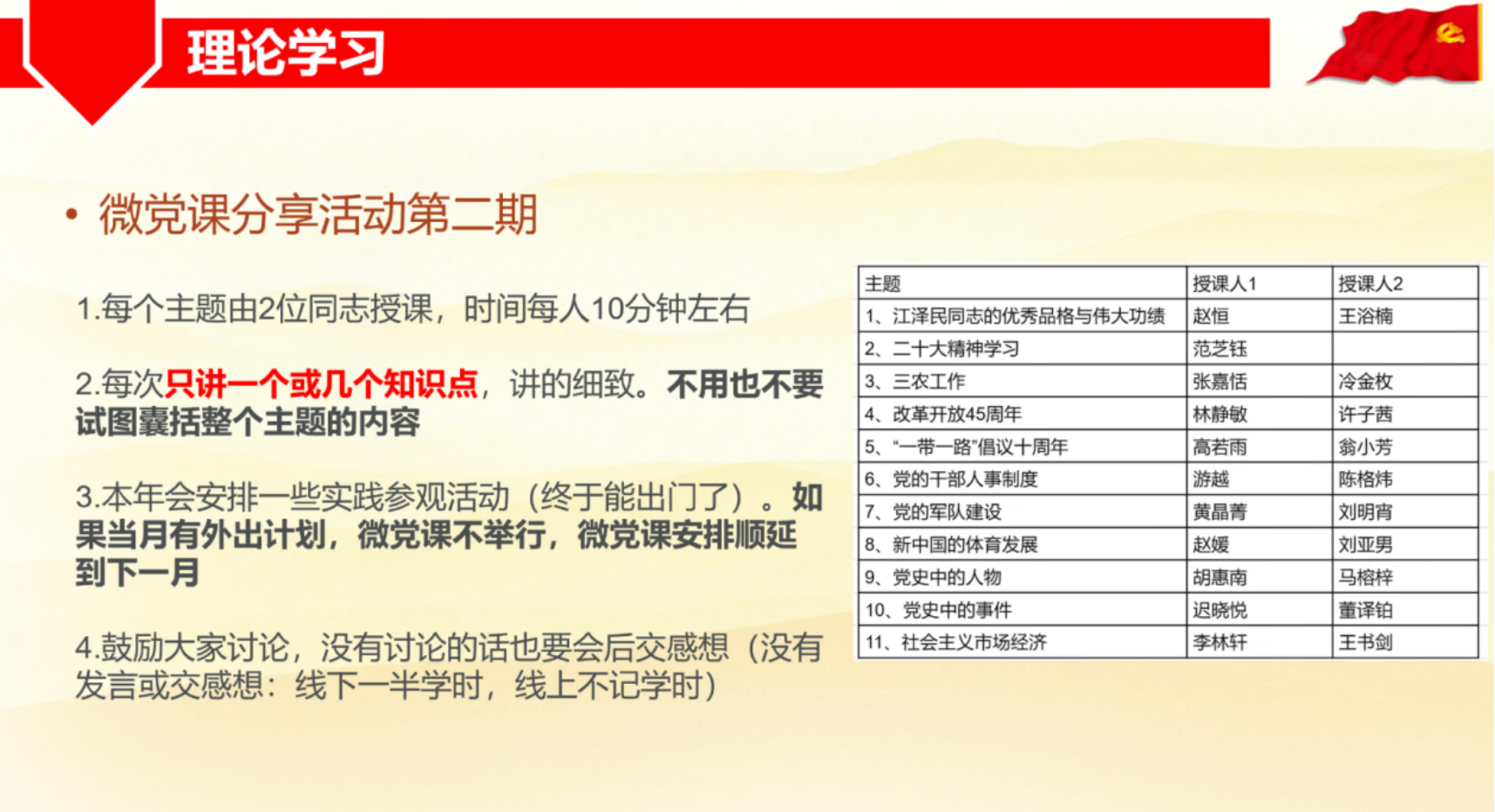 接下来,赵恒同志向大家讲解了第二季微党课的具体要求以及时间安排。