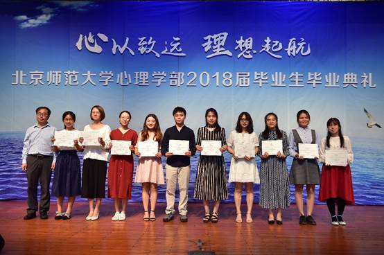 图六 2018年度“崇德奖学金”获奖同学合影 我校资深教授林崇德先生在致辞,给同学们寄予了深切希望,希望同学们要敬业,干一行爱一行钻一行,在某一行业成为专家。鼓励同学们用个人所学努力回报社会,志存高远,立志服务回报社会。