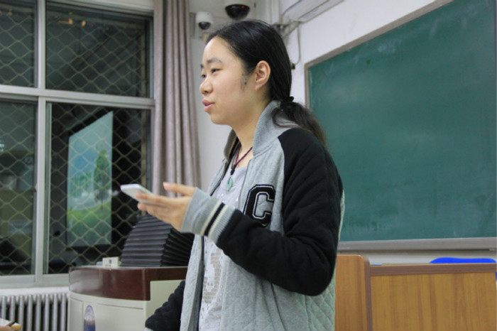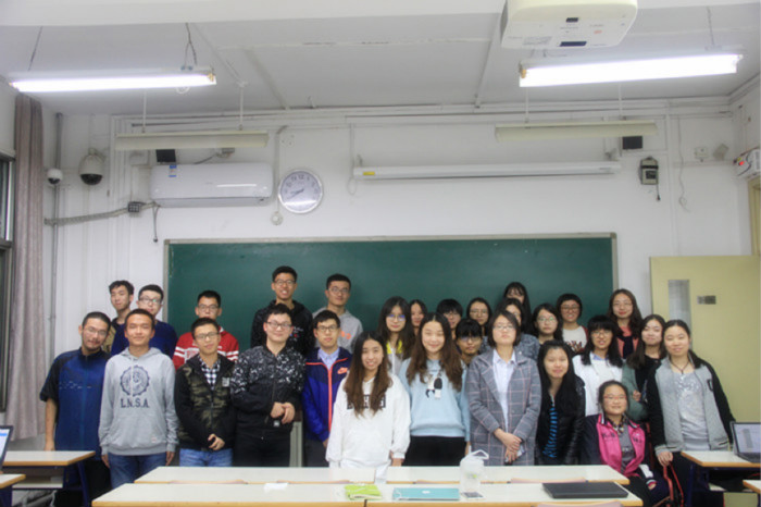 之后,本学期新加入班级的两位交流生向同学们做了自我介绍,并讲述了初到北京对学校的第一印象和自己对新学期的期盼,同学们向她们表示了热烈的欢迎。最后,进行了班级合照。 进行班级合照