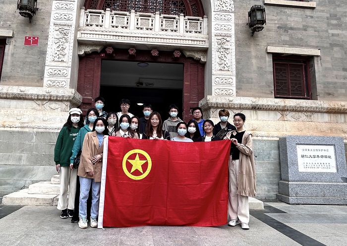 2023年4月2日下午,为深入学习光荣校史、传承红色基因,金牌影院 2021级本科公费师范班20余名同学前往金牌影院 辅仁校区进行参观学习。