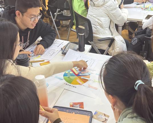 接下来,各组同学重新抽取OH卡,思考所抽取的OH卡是如何反映自己的权重分配,选择是否要重新分配自己的分数。随后,活动进入了最后的环节,每组在所发的OH卡中选择两张,分别代表“问题”与“解决方法”并展开讨论。同学们踊跃交流,活动气氛被推向高潮。最后,各组展示了各自的成果,其中第一组同学提出的“爱你,老己,下一秒见”的价值观更是获得了全场的掌声。