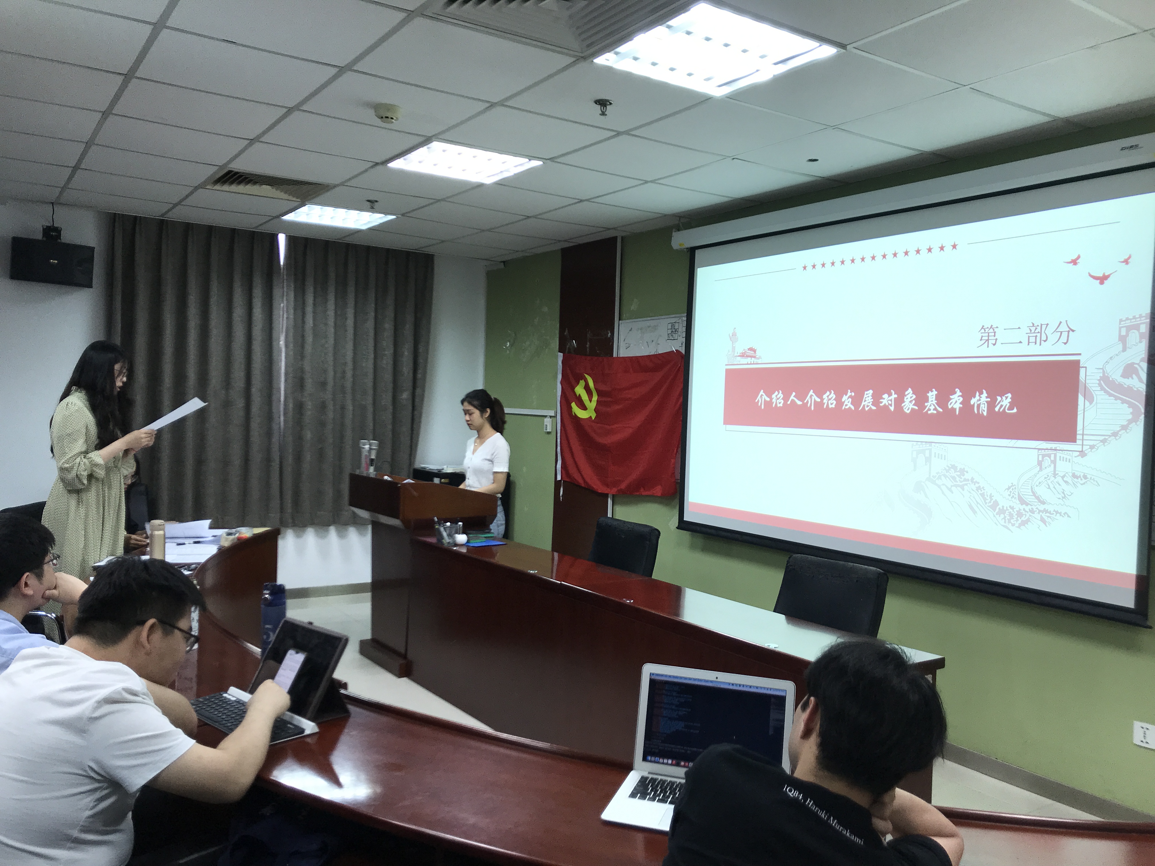 2021年5月30日晚六点,金牌影院 研究生第四党支部召开组织生活会及党员发展大会,会议由支部书记王赫同志主持,支部成员准时到场参与。 组织生活会正式开始 会议开始后,支部全体成员起立合唱《国际歌》。随后由各位同志主动分享近段时间以来的线上理论学习成果,并就中国共产党的产生、发展等大家感兴趣的问题开展进一步的讨论,在交流中深入学习,获得进步。 第二环节是由支部书记王赫同志主持召开的党员发展大会。针对发展对象刘佳、代宁、张蕊、顾雯4位同志的入党申请及相关情况进行了讨论和表决。 党员发展大会 四名同志依次发展,首先宣读入党志愿书,随后由其入党介绍人介绍发展对象有关情况,支部书记宣读发展对象审议情况;与会同志对发展同学的现实情况进行民主评议后,由党员同志进行无记名投票,并最终由组织委员宣布支部大会决议。最后,四名同志分别发表感想,表明要更加积极向党组织靠拢。 本次支部党员大会主要分享了近期线上理论学习的成果与困惑,并组织开展了四名同志的党员发展大会。新鲜血液的加入使大家深受鼓舞,也对支部未来工作的开展充满热情与期待。