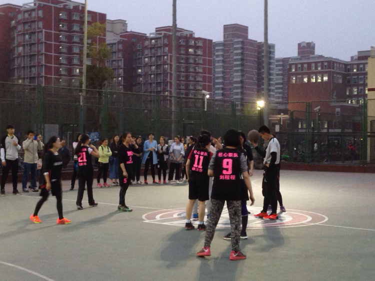第三届北师大研究生女子篮球联赛激战正酣,4月5日下午,心理学院与社会发展与公共政策学院组成的社心联队在与哲史外信马学院组成的联队的比赛中,以29比2大比分胜出。
