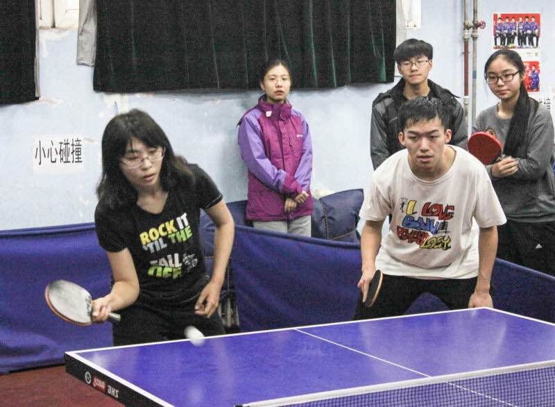 在男单、女单比赛中,两位选手都表现出了不俗的实力,赢得了现场观众的一片片喝彩。后来的男女混合双打,魏铭和向睿洋同学默契配合,将实力发挥到极致,引得阵阵掌声。