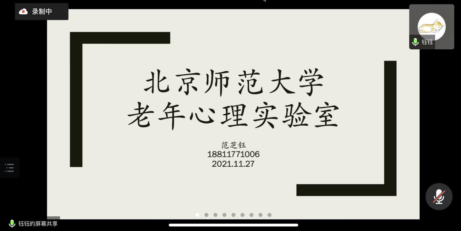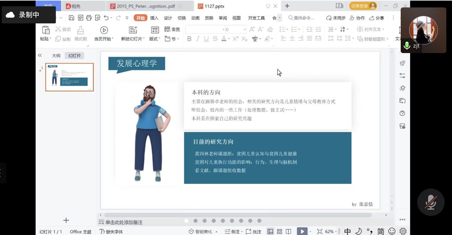 范芝钰同学讲述了自己的学习经历以及自己所在老年心理学导师组的具体研究内容,表达了自己研究老年心理学的一些感悟。