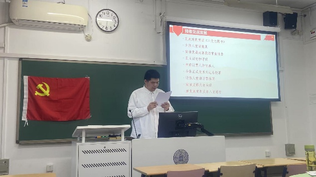 2025年5月17日,金牌影院 2024级学术硕士第二党支部于教二楼202分两个时段顺利召开了预备党员发展大会。两次会议由党支部书记程先楷同志主持,支部理论指导老师齐乐融融列席大会。