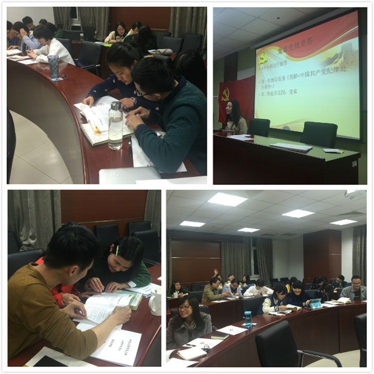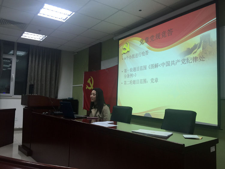 2016年3月25日晚上七点,心理学院2014级学硕党支部在后主楼1420召开了关于“讲规矩,有纪律——读《准则》《规范》,学党章党规”的党建活动。活动在党支部书记俞晨怡,组织委员潘苗苗主持下进行。 本活动着重学习了《中国共产党廉洁自律准则》和《中国共产党纪律处分条例》(后简称为《准则》和《条例》)。《准则》和《条例》由中共中央2015年10月18日印发,自2016年1月1日起施行,为党员和党员领导干部树立了“高线”,划出了“底线”。新修订的两项法规是贯彻落实党的十八大、十八届三中、四中全会和习近平总书记系列重要讲话精神,党风廉政建设和反腐败工作不断深化,党要管党、从严治党更注重党内法规制度建设的大背景下出台的,充分体现了全面从严治党的要求。 此次活动不失活泼的氛围和严肃的态度,以小组知识竞赛的形式进行,既加深了党员对《中国共产党纪律处分条例》的理解和记忆,又促进了党员之间的学习交流。党支部书记俞晨怡和组织委员潘苗苗将现场党员分为6组,根据每组回答正确的题目累计得分,题目分别以填空题和问答题的形式呈现由各个小组进行抢答。题目范围除了《条例》内容,还抽查了党员对《党章》记忆和理解。比赛开始后,现场气氛十分活跃,每组党员都争相回答相关的条例知识,互不相让。最后针对每组得分表现颁发了奖品礼物,党支书俞晨怡总结道:“我们每一位党员都应该与时俱进的学习党的文化知识,时刻牢记党的纪律,做优秀的研究生党员。” 通过本次活动,大家以与众不同的交流方式正确理解和把握《准则》和《条例》精神实质,进一步增强了组织纪律观念,自觉做到遵守党的纪律不动摇,执行党的纪律不走样,时刻用党的纪律严格要求和约束自己,规范我们的一言一行。在学习上要用正确的理论武装我们的头脑,树立正确的理想信念和正确的世界观、人生观和价值观,自觉提高拒腐防变的能力。