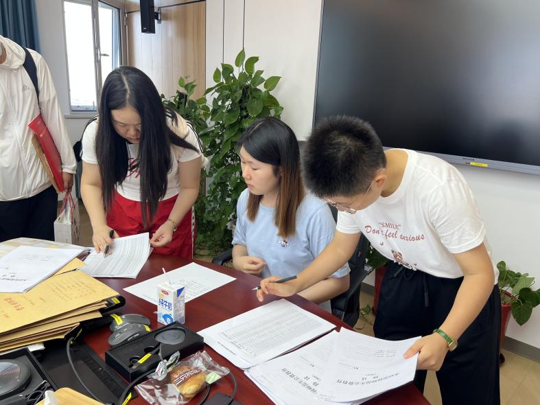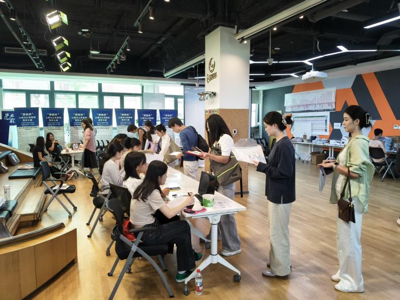 图3 金丰和迎新现场(专硕、专博) 清晨,京师广场的金牌影院 迎新站、后主楼和金丰和的迎新教室已准备就绪,工作人员们热情洋溢,期盼着2025级“心”同学的到来。上午7时许,随着第一位新生的到来,迎新工作正式拉开帷幕。工作人员们耐心细致地为新生办理报到手续,志愿者们积极热情地带领新生熟悉校园,迎新工作井然有序。