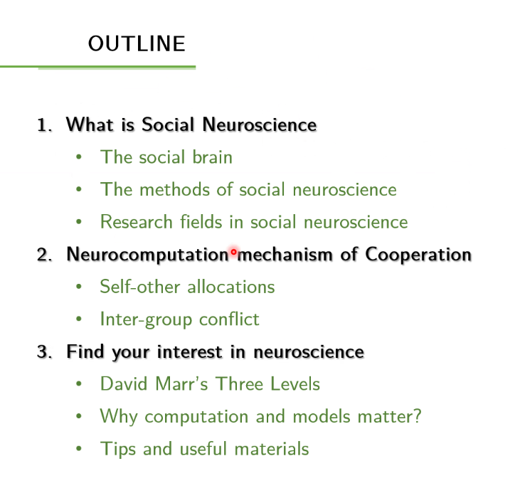 张佳鑫同学介绍了社会认知神经科学的研究意义、研究方法、研究领域,以具体的实验为例让大家看到社会认知神经科学的研究是有趣的、也是有意义的。此外,他还从物理学跨学科的角度分享了自己的学习思路。