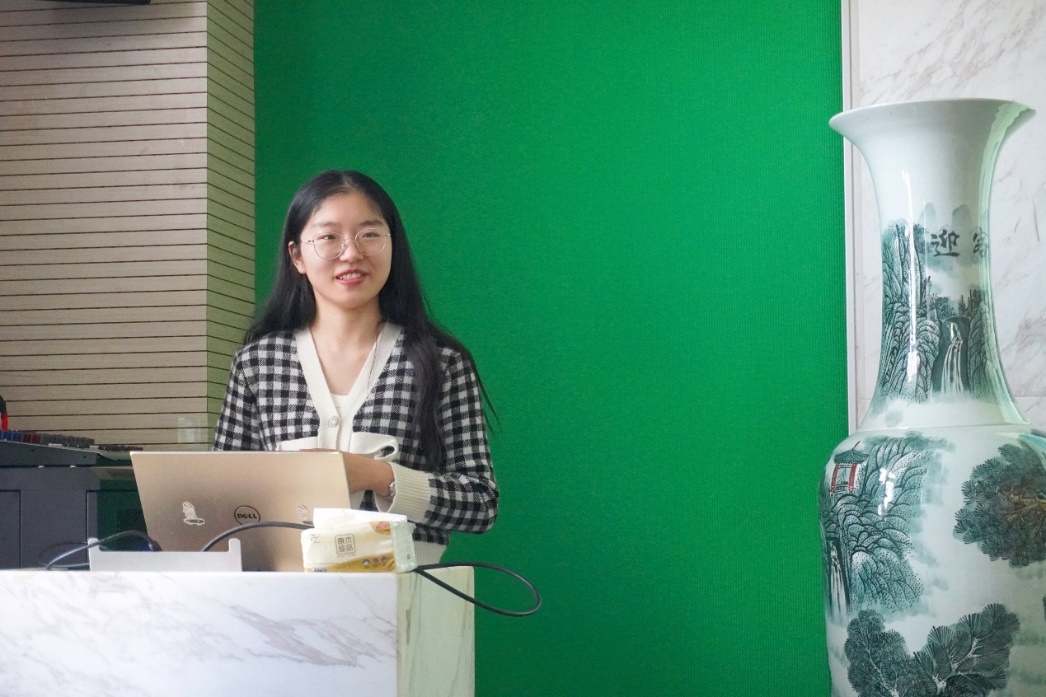 张婷宜同学进行分享 同样来自20级的张婷宜同学就如何在大学前两年进行好专业课学习进行了分享。她提出,获得了好的分数绝非是唯一的评价标准,在课程中所学习到有益于今后学习、工作或科研的技能不一定反映在卷面上,但同样重要。随后她还对大家感兴趣的本基问题进行了简单介绍,和大家分享了进行本基可能获得的收获以及相应面临的挑战与付出,同时也强调了找到做本基的内在动机的重要性。