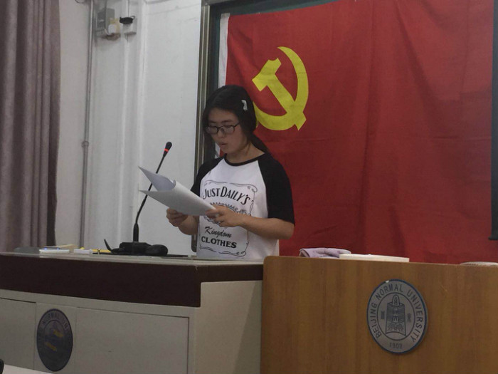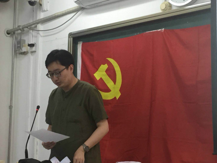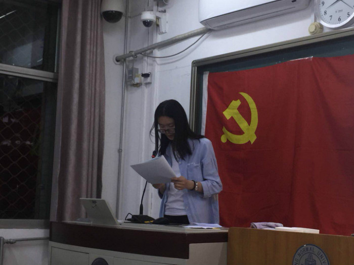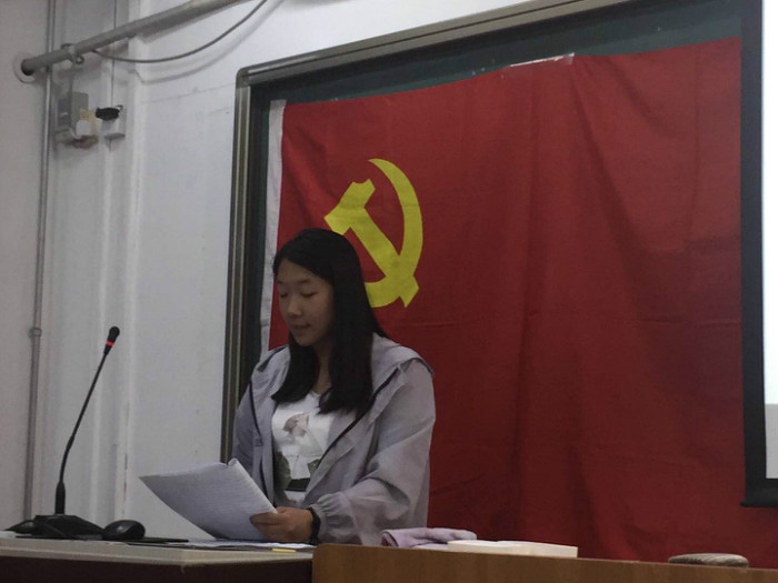 5月9号晚,本学期第一次、第二次金牌影院 本科生党支部党员发展大会于教二105在庄严的《国际歌》合唱声中拉开序幕。两次会议由支部书记陈子卓主持,分别针对发展对象史博文、武晓红和刘畅同志,以及刘亭序、李一行和周婧怡三位同志的入党申请及相关情况进行了讨论和表决。大会共有9名正式党员参加,超过应到会正式党员人数的半数,没有到会的7名正式党员出具了书面意见。 第一次党员发展大会开始,主持人陈子卓同志对本次大会的流程及发展对象顺序进行介绍,随后三名发展对象逐一宣读入党志愿书。三名发展对象结合自身实际,陈述了自己的入党动机,表达了对中国共产党的向往,表示愿意服从党的领导,对党忠诚,积极工作,坚定不移跟党走,为共产主义事业奋斗终身。 随后,三位发展对象的入党介绍人分别宣读介绍人意见,其中武晓红同志的第一介绍人书面意见由支部书记陈子卓同志代为宣读,他们肯定了发展对象在培养考察期间的思想觉悟和突出表现,并且针对他们在生活学习中的不足之处提出了批评和建议。 第一介绍人的意见宣读完毕后,与会的同志就三位发展对象的优点和不足之处进行了民主评议。随后进行全体正式党员进行无记名投票。支部党员赞成接收史博文、武晓红和刘畅三位同志为中共预备党员。三名同志也表示将在实践中不断锻炼自己,更努力地为身边的同学服务,努力成为一名优秀的共产党员。