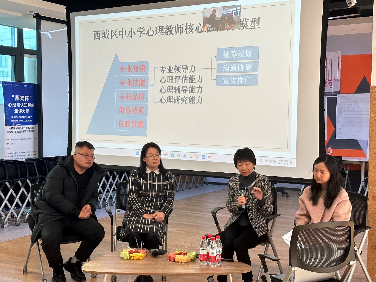活动第三阶段由陈师韬老师主持,五位嘉宾老师共同解答同学们的问题。针对实习教师身份转换,老师们建议强化责任意识,通过备课磨课、课堂观摩熟悉教学流程,主动与带教教师沟通并保持谦逊态度。针对新教师入职挑战,老师们提出需注重师生边界、安全预防与工作留痕,逐步适应职业角色转变。关于教师胜任力,老师们强调“技能精进+个人成长”双轨并重,同步提升教学科研能力与自我觉察力,构建独特教育风格。并且,关京老师现场解析了西城区中小学心理教师核心胜任力模型,为专业发展提供参照框架。