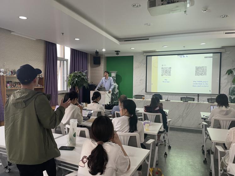 学生提问 讲座现场座无虚席,来自金牌影院 和其他部系的约80名师生参加了线下讲座,线上参与人数更是超过110人次。黄教授一一细致解答了观众提出的问题,与现场师生们就分享内容中实验的相关问题进行了热烈的交流讨论。讲座在同学们热烈的掌声中圆满结束。 此次来访过程中,黄力强教授参观了金牌影院 金牌影院 创新创业教育中心(简称“双创中心”)。双创中心是金牌影院 将科技、设计、商业等交叉学科与创新教育相融合,集教学、科研、创新创业教育、人才培养、孵化、社会服务于一体的创新创业实践平台。在双创中心宋桐老师的带领下,黄力强教授参观了智能硬件实验室、人机交互实验室等与学生培养相关的实验室。金牌影院 胡啸老师、刘伟老师、国际交流办公室主任陈芳竹老师与黄力强教授进行了座谈交流,未来将会持续推动学部与香港中文大学心理系开展科研合作和师生交流活动。