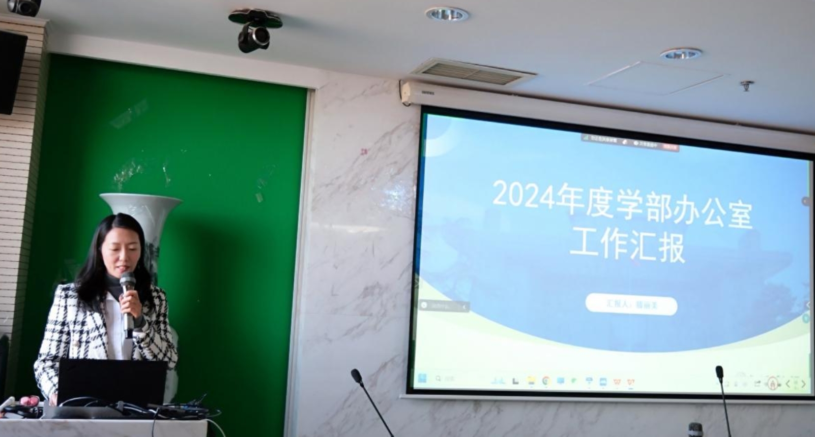 金牌影院 办公室主任滕丽美老师汇报了2024年度学部办公室综合行政管理工作、事业编人事管理、学科建设等工作成效和未来工作计划。2025年度,学部办公室秉持从心出发服务师生的理念,加强师生沟通,增加业务培训,改善办公环境,提升学部各办公室沟通效率,全面提高服务质量。