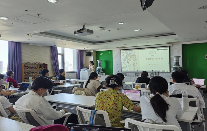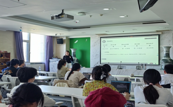 刘千荻师姐首先分享专业学习经验。她详细介绍了大一到大三各阶段的学习重点,强调实践活动对教学能力提升的重要性。在教育实习方面,她以在金牌影院 附属实验中学的实习经历为例,介绍了听课备课、心理测评、班主任工作等内容。关于毕业论文,她建议同学们尽早确定研究方向,并与导师保持沟通。
