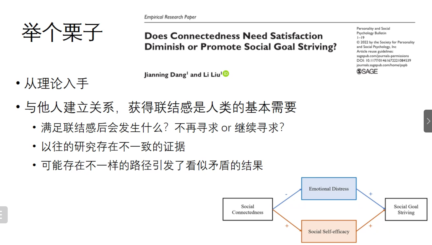 陈格炜同学则围绕社心问题的提出与同学们进行了分享。通过“三个要点”的提问与已有研究中的例子帮助同学们理解如何更好地提出社会心理学的研究问题。