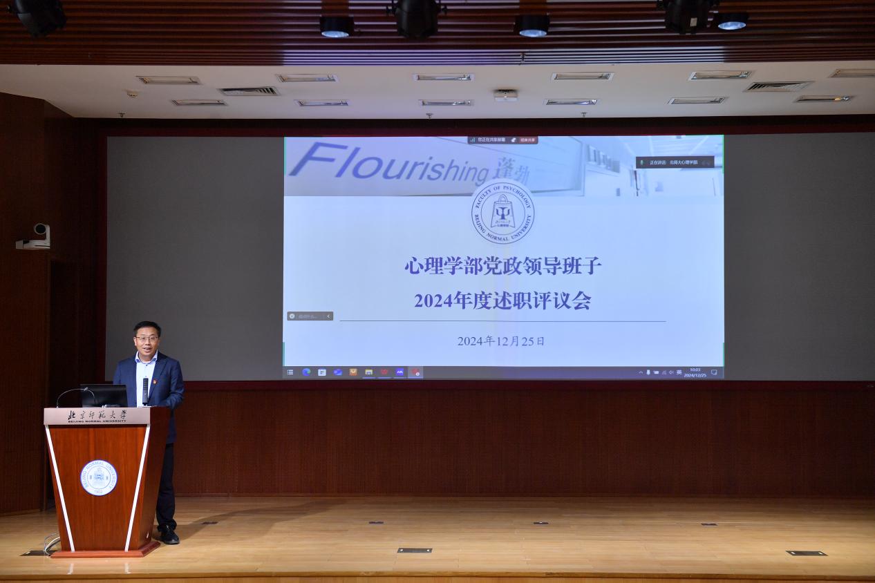 副部长王君、韩在柱、胡思源、骆方、韩卓,党委副书记闫琰,部长助理孙舒平就分管工作国际交流、国重研究生培养、行政财务、本硕博教学、科研管理与实验平台建设、党建思政、应用心理专业人才培养与首次全国学生心理健康监测工作等做了述职汇报。