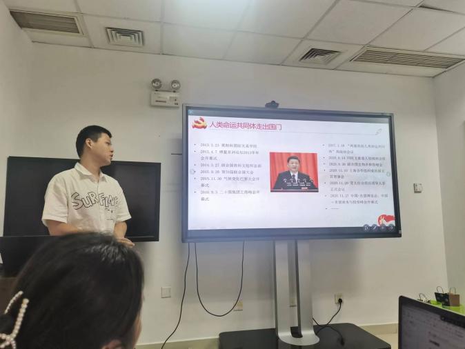 由于高若雨同志因事请假,微党课由支书赵恒同志根据高若雨同志准备的内容,围绕人类命运共同体与生态环境治理的全球困境进行讲解。可以说,人类命运共同体理念是摆脱全球环境治理困局的金钥匙。此外,赵恒同志也分享了十年来中国生态文明建设的成就,如:优化资源结构、优化升级产业结构以及提高适应气候变化的能力等。