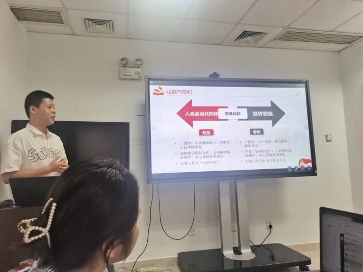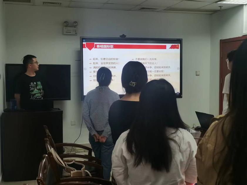 为了增强理论学习效果、提高理论学习参与度、创新理论学习形式,研究生第五党支部开展了微党课系列活动。本季活动第七期,也即最后一期,于2022年9月25日19:45在后主楼1532召开。会议由党支部书记赵恒同志主持。本次微党课的主题是“人类命运共同体”。支部内19名党员与积极分子同志参与了本次微党课的学习。 首先,奏唱国际歌。