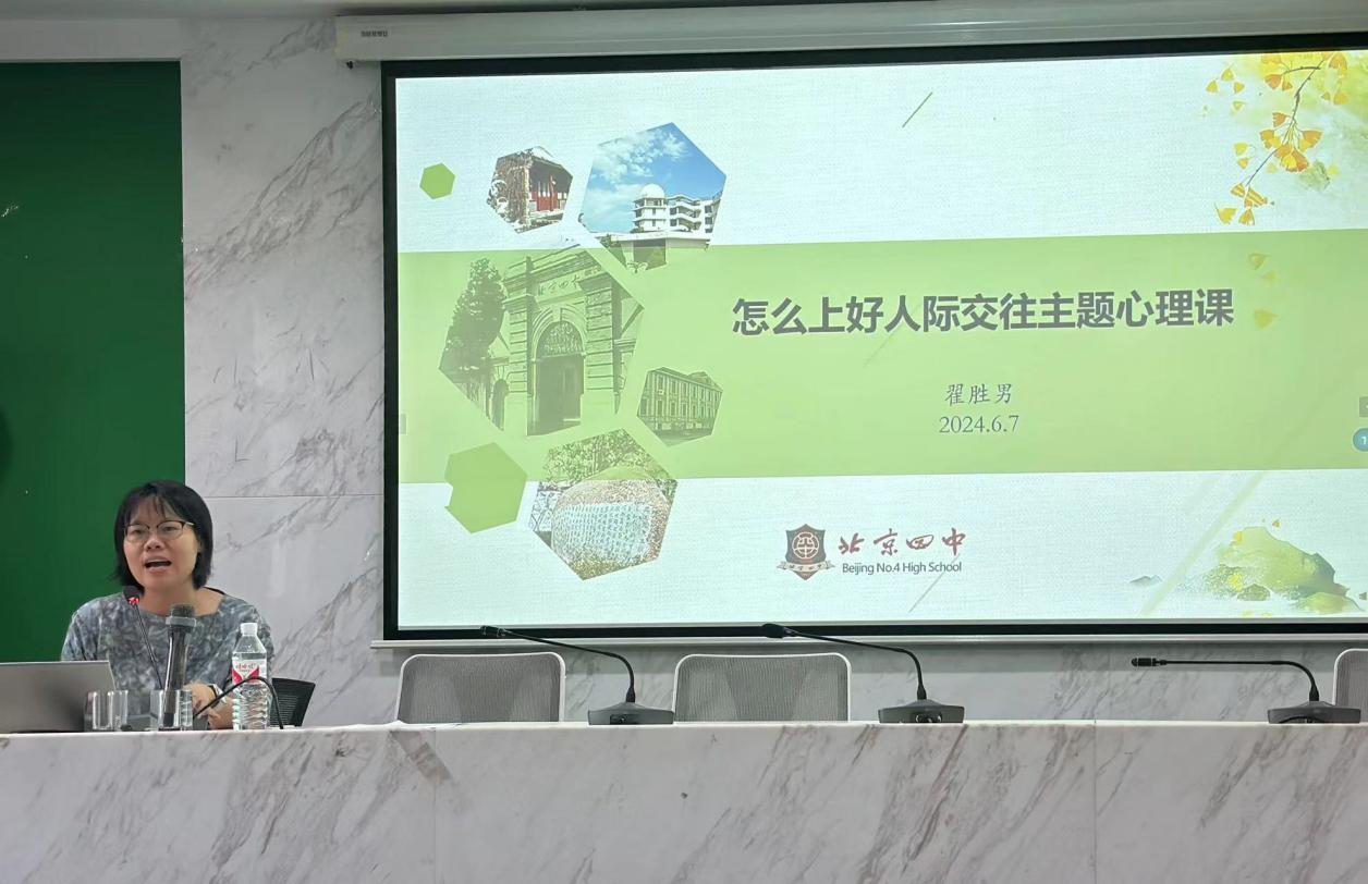 2024年6月7日,我们有幸邀请到了北京四中的翟胜男老师来给大家上一节有关人际交往的心理健康课。课上,老师就中学生心理健康课程可能会产生的问题和重点要求展开了叙述。