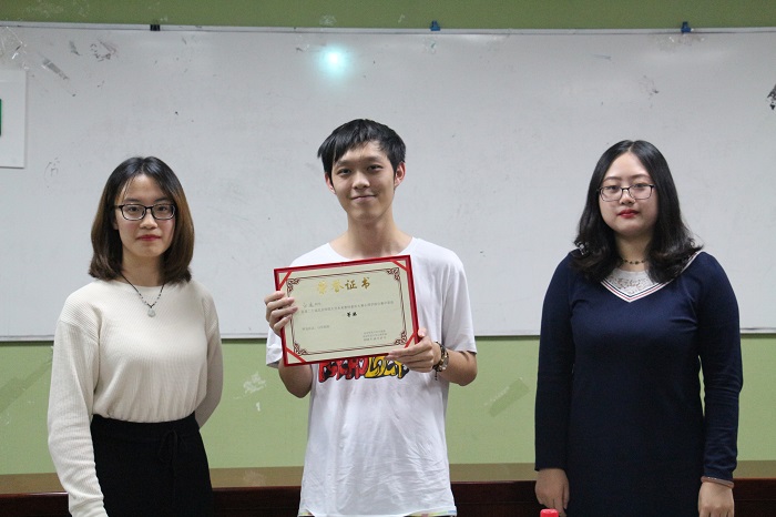 2019年10.27日晚17:30,第二十届未来教师素质大赛金牌影院 分赛于后主楼1420圆满举办。 当天到场的评委有:郑悦 ,16级数学科学学院本科生,“四有好老师”调研人员,获第19届北师大未教赛复赛二等奖,“优秀免费师范生奖学金”等。尤梦婷,16级教育学部本科生,北师大教育学部2018年“一带一路”教育公益行动优秀实践队长,多次担任支教队长等。冯阳,12级金牌影院 本科生,17级金牌影院 硕士研究生,参与共青团中央大学生志愿服务西部计划并任教,曾赴台湾支教,曾任北京市台京学校初中部地理老师一年。 一号选手李宁身着一套蓝色西装,由一瓶墨水扩散的矿泉水带领我们来到生物课堂,运用生动的比喻为我们讲解了细胞中的扩散,极具个人特色。 二号选手彭梦婷由对孔子的简单介绍引入到论语十则,通过翻译文言文介绍了扩词法、通假字等并结合自身感悟进行了深入理解。 三号选手张玲自然大方从容地为我们讲解了方程的根和函数的零点,用小人过河作比来理解函数零点的存在。 四号选手曾玲,板书画图清晰明了,层层递进地为我们讲解了细胞有丝分裂的过程。 五号选手林德堃为我们介绍了物理实验“测量电源电动势和内阻”,逻辑清晰,内容充实。 六号选手关岳琳,课件精致美观,台风从容,讲解逻辑清晰,带领我们复习了细胞中的糖类脂质。 七号选手姜楚为的课堂节奏紧凑、活泼有趣,为我们讲解了细胞呼吸的知识。 八号选手李小雨结合教材清楚具体地讲解了等差数列的求和公式,与学生互动性强,课堂氛围活泼。 九号选手范尧睿康以电影片段引入磁场,板书逻辑清晰,带我们进入物理磁场的世界。 十号选手卢莉自信从容,台风稳健,内容充实,清晰地讲解了数学中的多项式定理。 十一号选手冉恒月为我们讲解了古典概型,逻辑清晰明了,课堂互动性良好,生动有趣。 十二号选手魏铱楠讲解了动植物细胞结构的异同比较,声音抑扬顿挫,课堂氛围活泼, 十三号选手张逸从容放松,代入感强,结合形象的板书,有趣生动地为我们介绍了数学中的任意角。 对于十三位选手的表现,评委们也给出了针对性的精彩点评。比赛最终,张逸荣获一等奖;姜楚为、魏铱楠荣获二等奖;李宁、张琳、范尧睿康荣获三等奖。 本次比赛,选手们认真对待,充分准备,表现精彩纷呈。他们以坚定的步伐向着未来的三尺讲台迈进勇敢的一大步。 比赛结束后,评委选手与全体工作人员合影留念,本次大赛圆满落幕。 金牌影院 学生会 供稿 | 郭雨馨 供图 | 李佳瑜 |